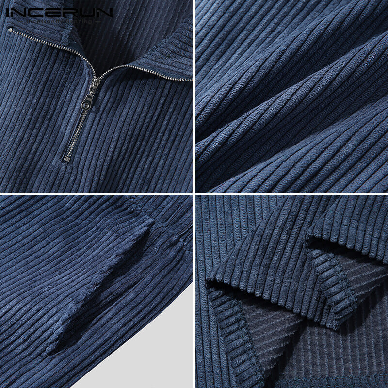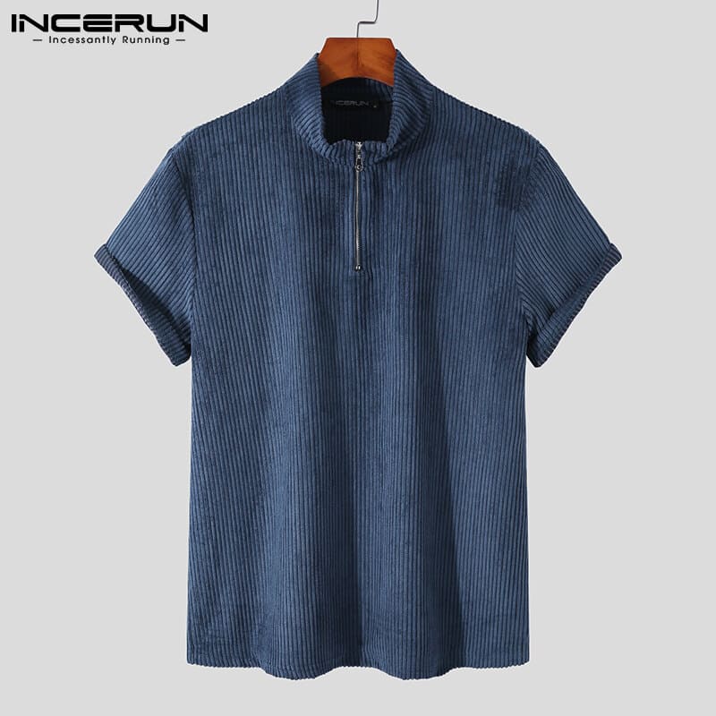 Beehoo INCERUN Mens Short Sleeve Zip Up Sets Shorts Suits Fit Sleepwear Underwear(Western Style)