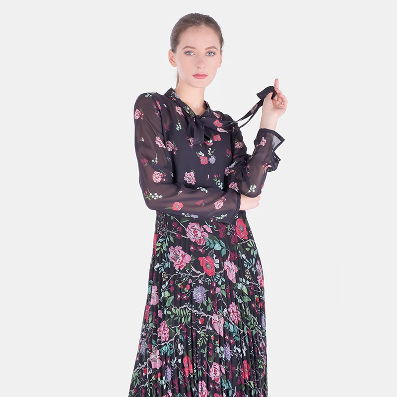 Customized pretty high quality Fashionable flowing two piece set women clothing with long sleeve