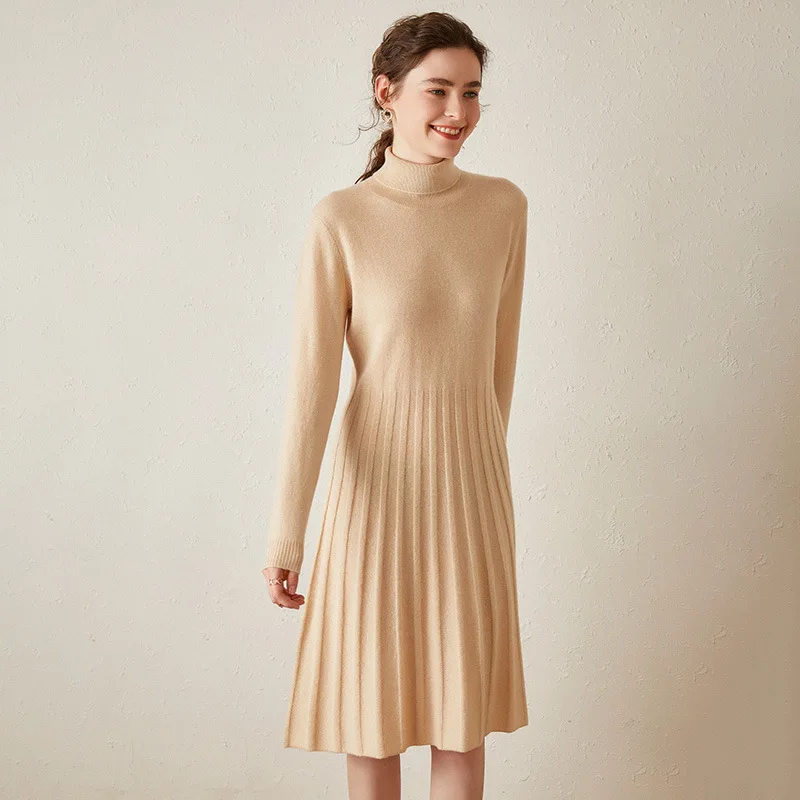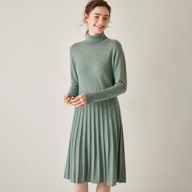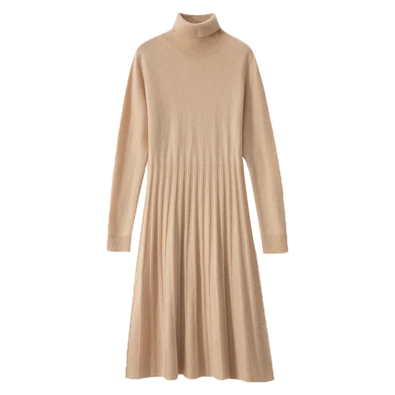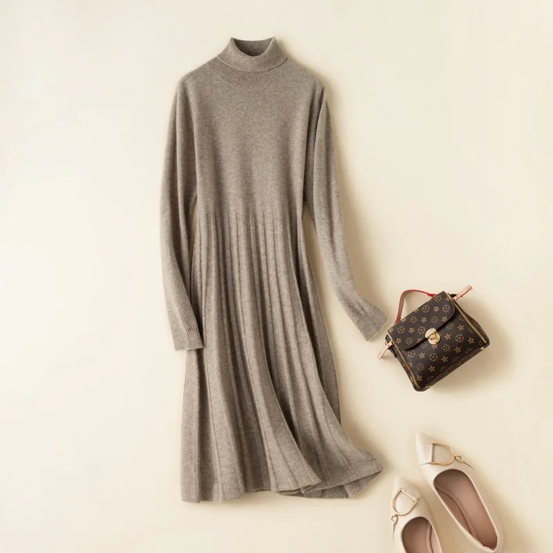 Plus Size Turtleneck Mid-length New Long-sleeved Wool Knitted Sweater Dress for Women3232350